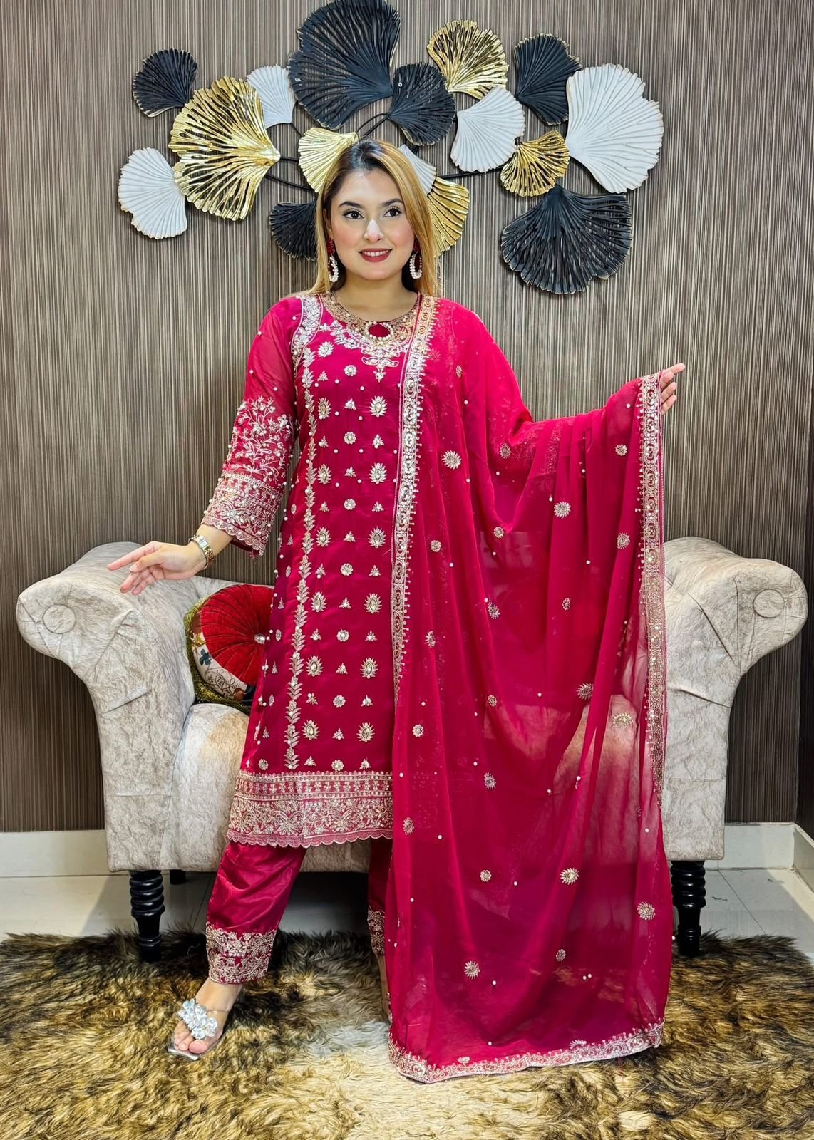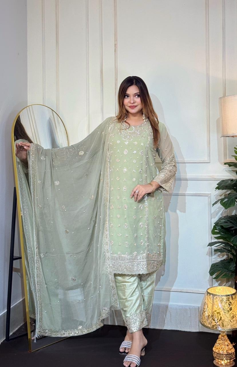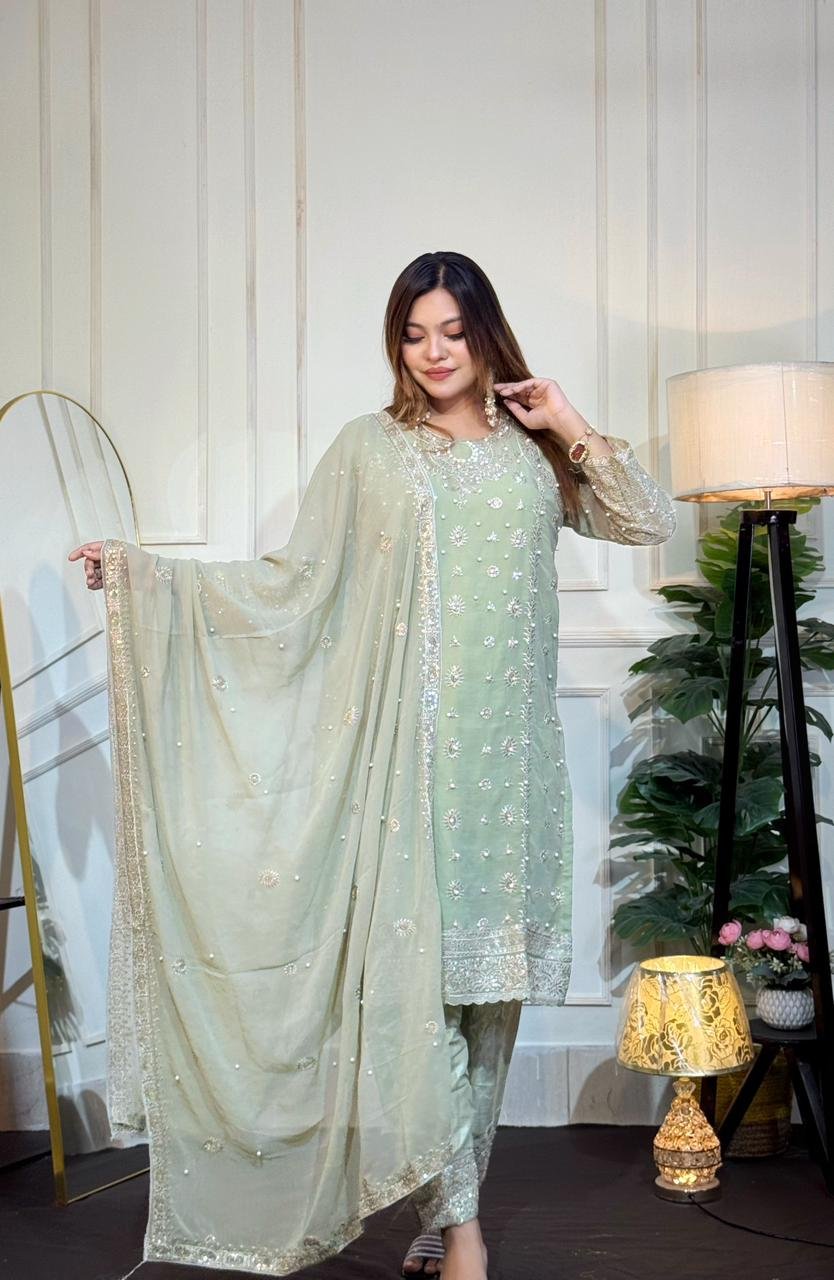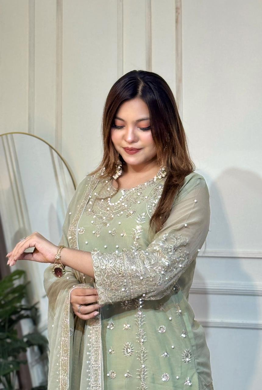 All over dress pearl work